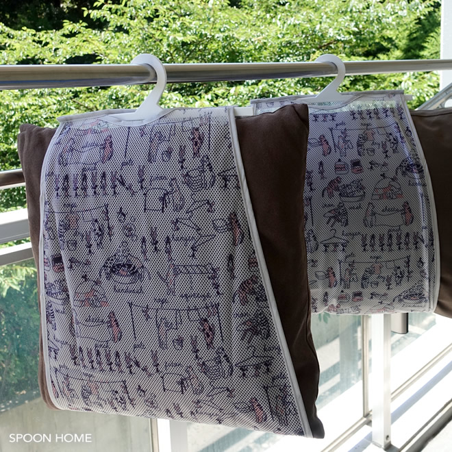 こちらの「まくら干しネット」も便利なアイテム。2枚で1セットになっており、枕を天日干しする時に重宝しています。