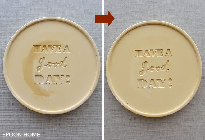左が使用した直後、右が1時間後のコースターです。速乾というわけではありませんが、しっかりと乾き、繰り返し使用することができます。