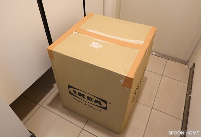 自宅にあったIKEAの小物配送用ダンボールがちょうど三辺計160cmで、こちらを利用することに。1回の買取で送れるダンボールは1箱です。