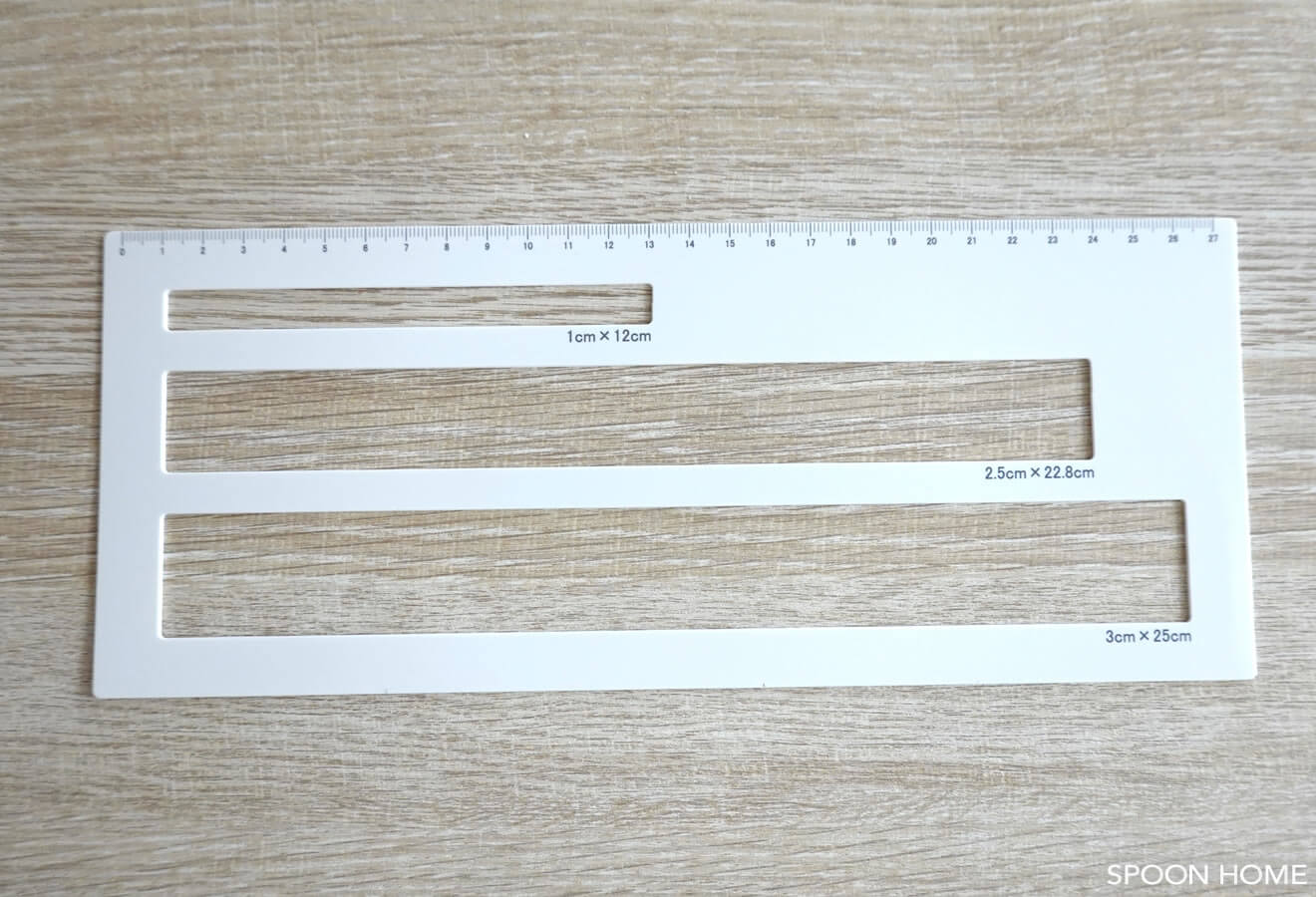 定規は紙製ですが、厚みがあるので発送ケースを通しやすいです。