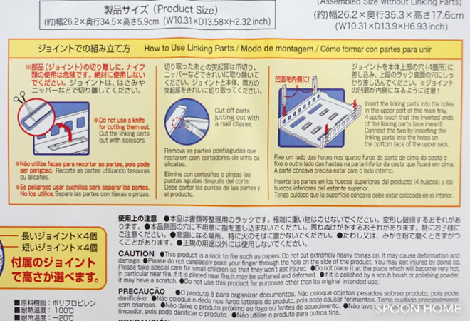 A4ジョイントトレーの商品パッケージです。テープでとめられており、簡単に剥がすことができました。トレーはラックと組み合わせて使用できますが、単体でも便利なアイテムです。