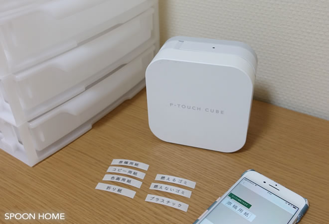 トレーに貼っているラベルシールは、スマホアプリでデザイン案が作れる「ピータッチキューブ」を使用しました。透明なテープを使用したので、トレーにキレイに馴染んでいます。