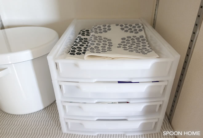 キッチンクロスだけでなく、ランチョンマットや風呂敷、ランチクロスの収納にもおすすめです。