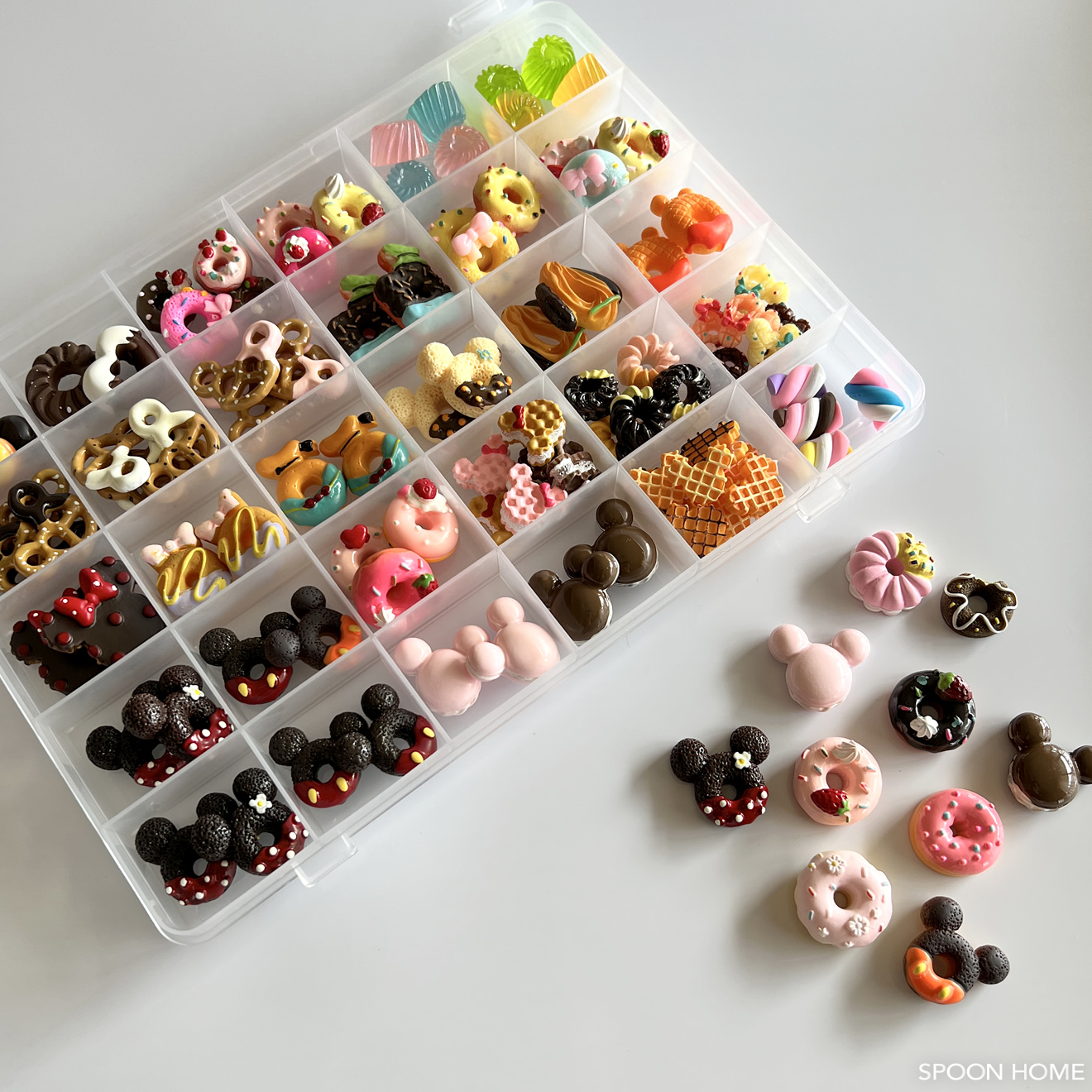 ボールやクレヨンなど、食べ物モチーフ以外のデコパーツも品揃えが豊富でした。やや大きめサイズのデコパーツはSIKIRI10に収納しています。