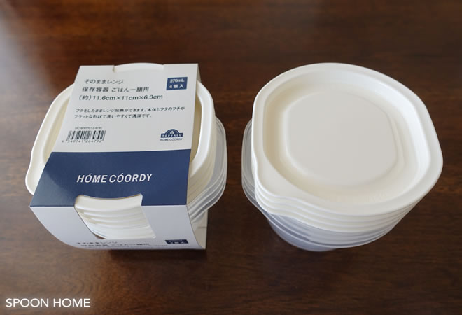 フタと本体のフチがフラットになっており、洗いやすいのも嬉しいポイント。ご飯一膳用は1セットに4個入っており、198円+税で購入することができます。