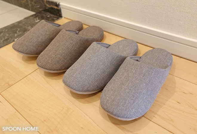自宅ではブラウンとグレーの落ち着いた色合いのスリッパを使用していますが、その他にもレッドやライトブルー、ホワイトのスリッパも販売しています。