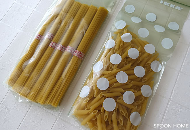 BAMSIGプラスチック袋は細長い物の保存・収納に向いているアイテムです。パスタやそうめんなど、乾麺の保存に便利でした。
