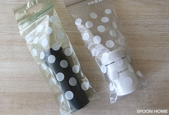 BAMSIGプラスチック袋は表側にドット柄がデザインされており、裏側は無地でした。