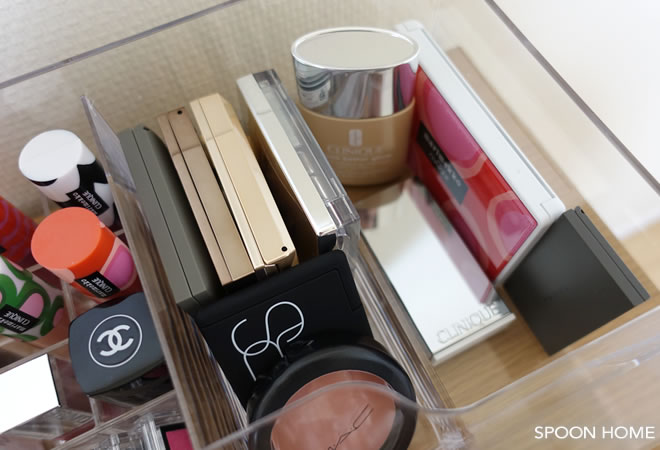 よく使用するメイク道具や化粧品をまとめて収納しました。たくさんの量のコスメを1つのボックスにまとめることができます。