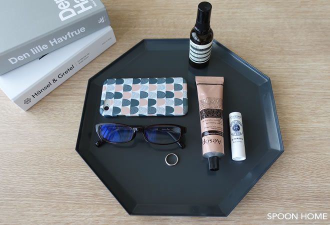 メガネや指輪、スマートフォン、ハンドクリームなど、よく使用するアイテムをまとめておくと便利です。