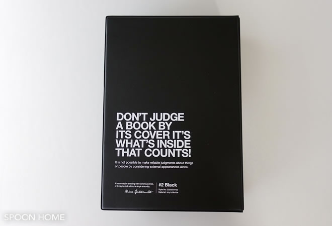 上でご紹介した「デザインケース White」の黒色バージョンです。サイズや形、文字の内容は同じで、文字の種類と色が異なります。白色のデザインケースは「セリフ体」、黒色のデザインケースは「サンセリフ体」を使用しています。