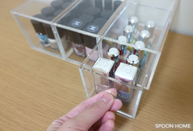 キレイに並んだマニキュアは片手で簡単に取り出すことができます。