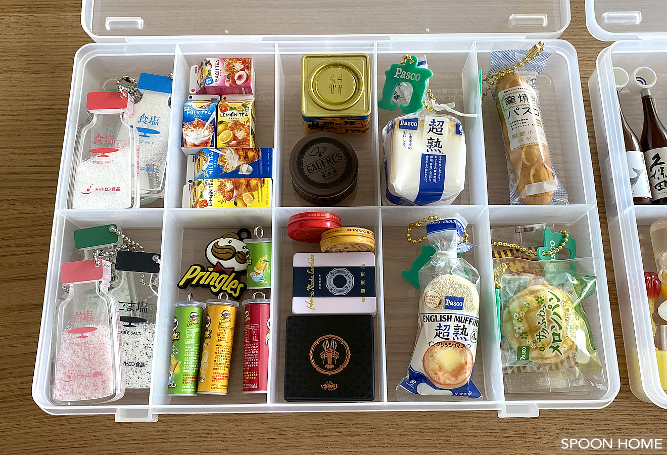 フード系のガチャガチャが好きで、どんどん数が増えてしまいました。食べ物のガチャガチャ(カプセルトイ)はミニサイズのアイテムが多く、100均の収納ケースに入れやすいです。