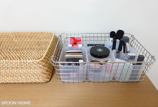 サビに強く丈夫な「18-8ステンレス」を使用したワイヤーバスケットも人気が高い収納グッズです。PPメイクボックスと組み合わせることで、コスメをキレイに収納することができました。