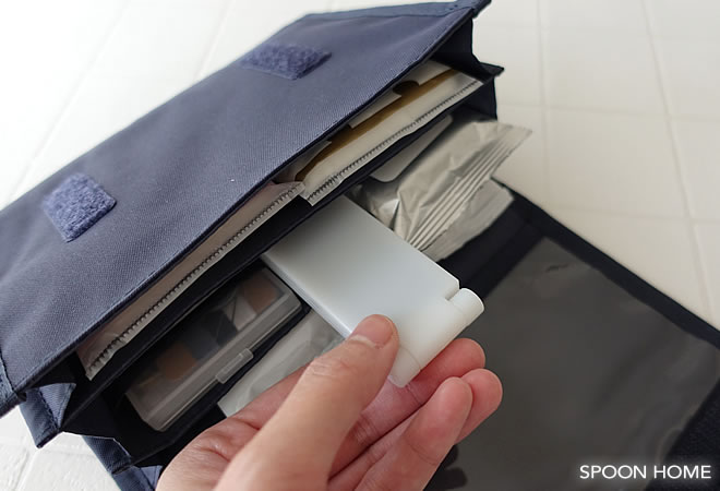 こちらも無印良品で購入しました。小さいアイテムはカード用のポケットに入れることができるので、使いたい時にすぐに取り出すことができます。