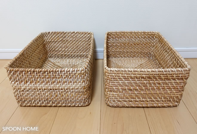 こちらの記事では、重なるラタン長方形バスケットの種類やサイズ、収納アイデアを写真付きでレポートしています!