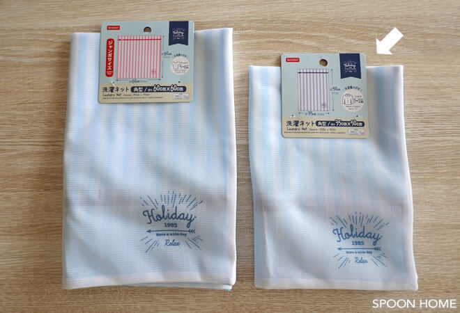 60cm×60cmの洗濯ネットはサイズが大きく、レールの収納には不向きでした。