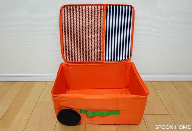 「ベッド下収納ボックス」なので、ベッド下から取り出して使いやすい形になっていました。蓋は半分のみを開けることも可能です。