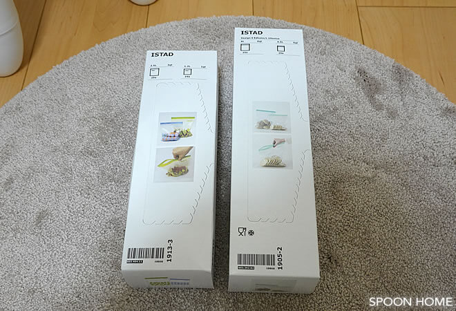 ISTADフリーザーバッグは、1箱299円で販売しています。1つの箱に2つのサイズのフリーザーバッグが入っていました。