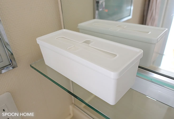 横長タイプのロングは、使い捨てマスクの収納に向いているアイテムです。フタ付きなので埃を避けることができ、取り出しやすいのが特徴。