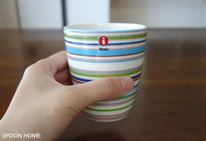 映画「かもめ食堂」に登場していたオリゴのマグカップは、食卓やデスクに彩りを加えてくれるアイテムです。細いボーダー柄が印象的な食器シリーズで、比較的軽量なのが嬉しいポイント。
