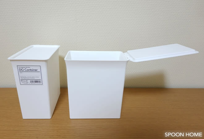 洗剤ケースは本体と蓋がわかれていますが、フタ付きスリムダストは片側だけ本体と蓋がつながっており、蓋がパタパタと開け閉めできるアイテムです。