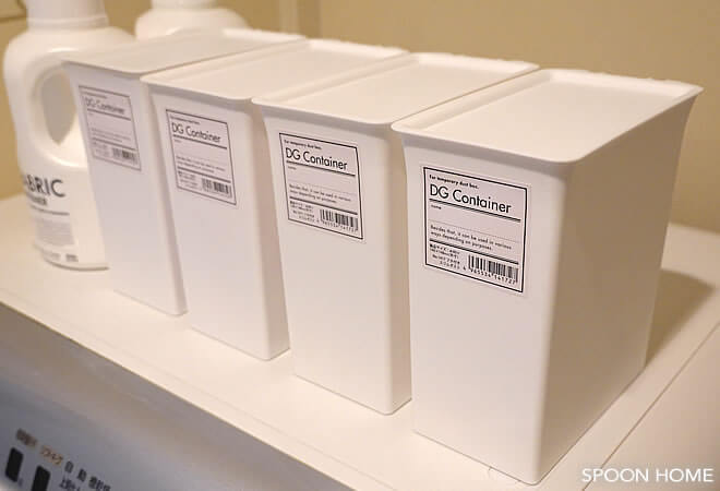 スリムな容器なので、洗濯ネットや洗濯バサミの小分け収納に便利でした。容器ごとに収納するアイテムを分けています。