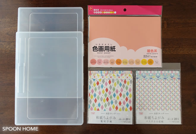 色画用紙や和紙ちよがみなど、ペーパーアイテムの収納にも重宝します。