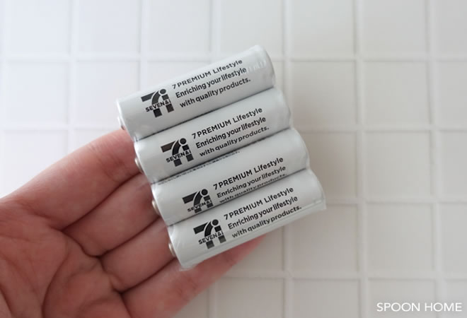 こちらはセブンイレブンで購入したアルカリ乾電池です。パッケージのみが異なります。