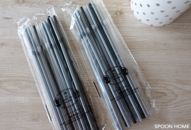 ブラック、シルバー、クリアの3色がセットになったストローも見つけることができました。1セット58円で販売しており、100円ショップでは見かけない色の組み合わせです。