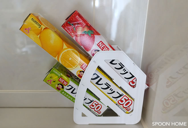 並べて収納できるので使いたいラップを取り出しやすく、どこに何を収納しているか一目で分かります。